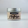 Verpackung | Lebensmittelechte lackierte Weißblechdose mit durchsichtigem Glas. Dose hat die Maße: 48x58 mm und wiegt leer 30 Gramm. Recyclingfähig über die gelbe Tonne. |